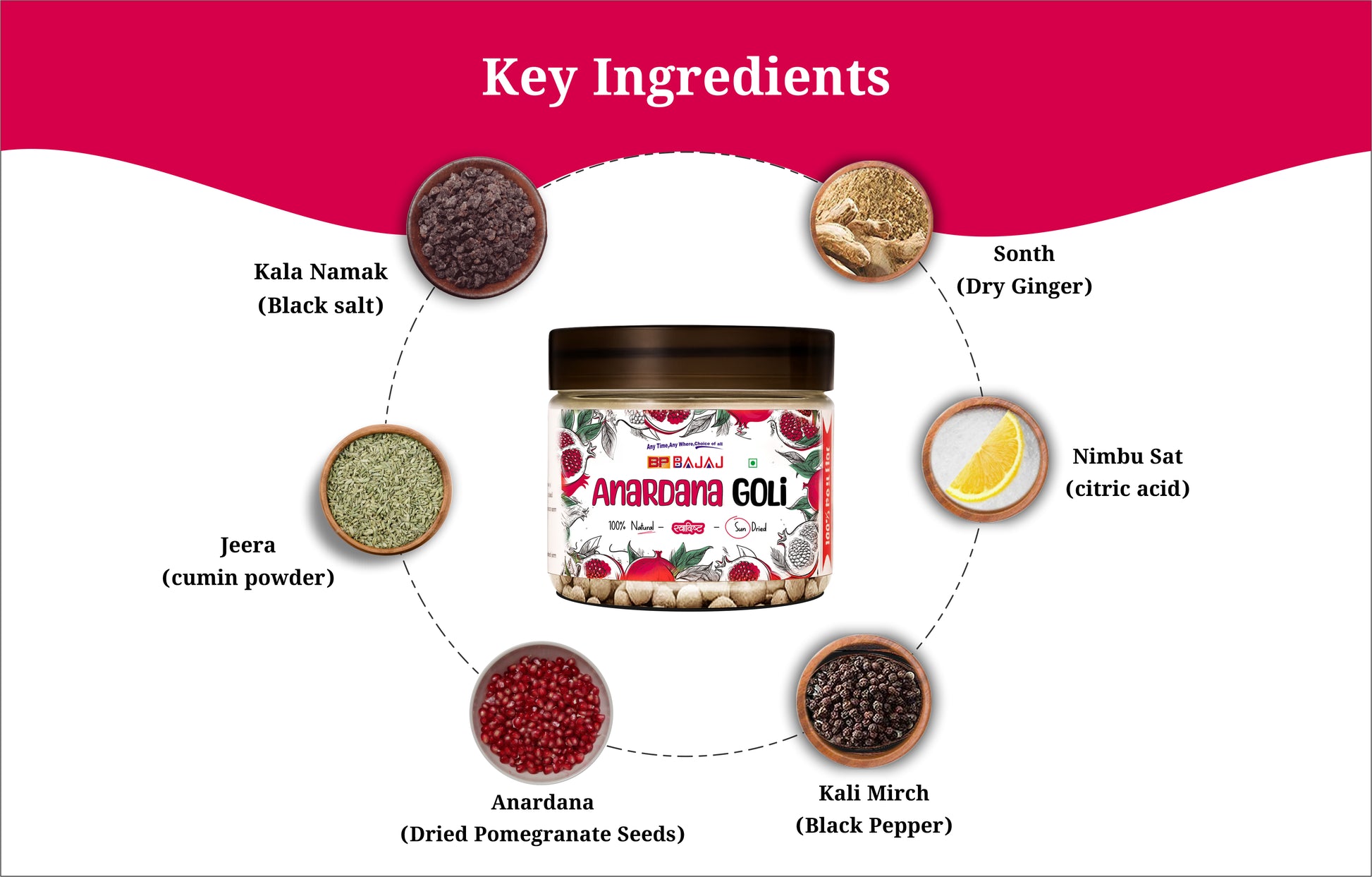 Anardana, Sonth, Kali Mirch, Pipal, Sea Salt, Dhania, Citric Acid, Jeera, Black Salt, Amchur, Sugar, Excipients Q.S.