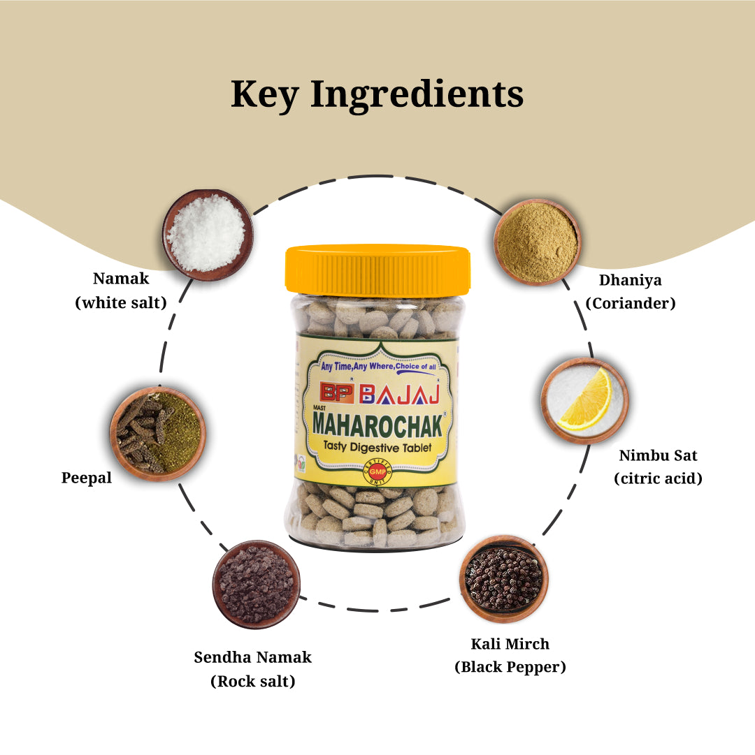 Embrace the rich flavors and digestive benefits of BCP Bajaj Maharochak, a traditional Indian mouth freshener meticulously crafted from natural ingredients and sun-dried to perfection.